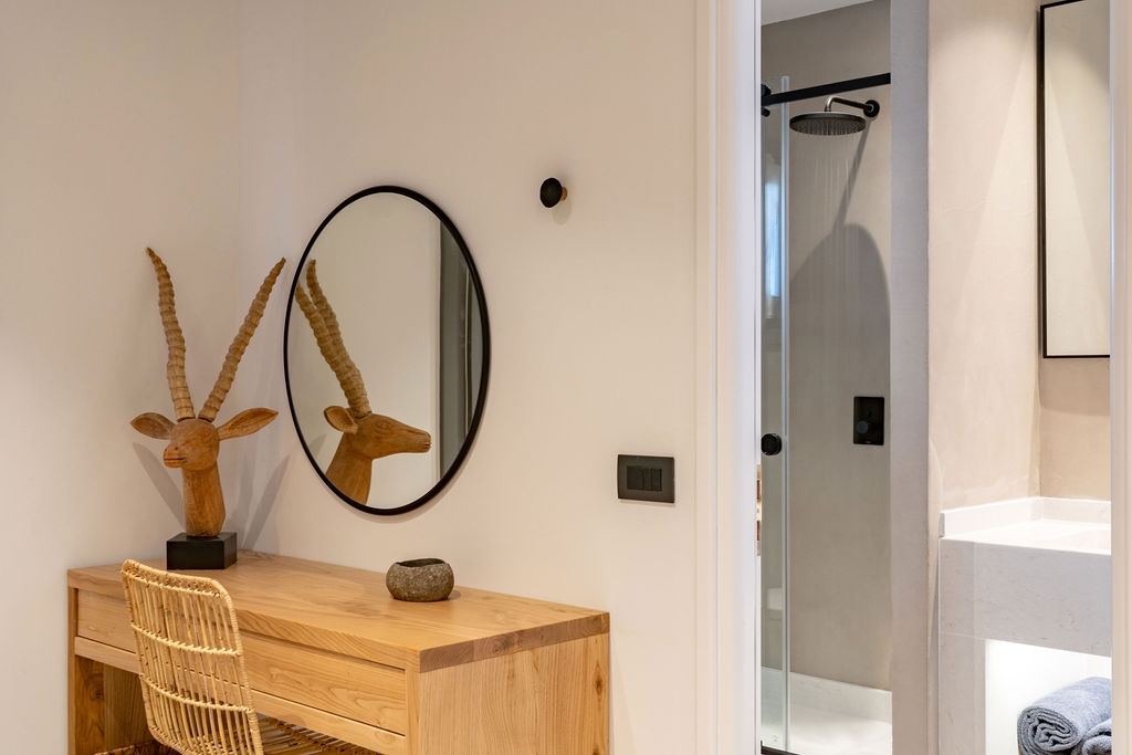 Suite 30 m² on the top floor with outdoor private jacuzzi on the balcony, Queen size bed, full-length mirror, smart TV, Nespresso coffee maker, kettle, blow dryer, slippers and bathroom complete with power shower.